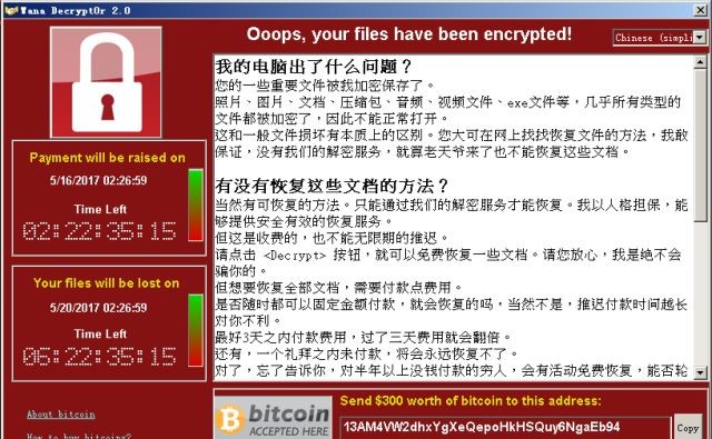 全国多所高校传来消息,校园网里很多师生用户纷纷中了一种“勒索病毒”,本地硬盘的文件统统被远程劫持加密,据说要支付价值相当于300美元的虚拟货币才能解锁!!被感染的组织和机构已经覆盖了几乎所有地区,影响范围遍布高校、火车站、自助终端、邮政、加油站、医院、政府办事终端等多个领域。贺州学院、桂林电子科技大学、桂林航天工业学院、宁波大学,浙江中医药大学、浙江工商大学、浙江理工大学、大连海事大学、山东大学等众多高校都受到了病毒攻击。