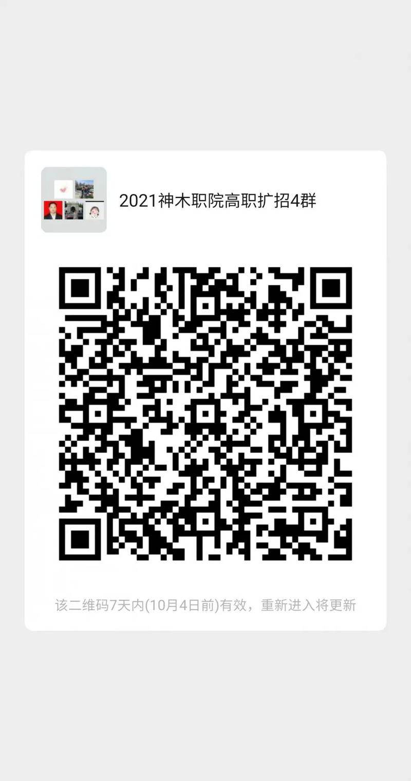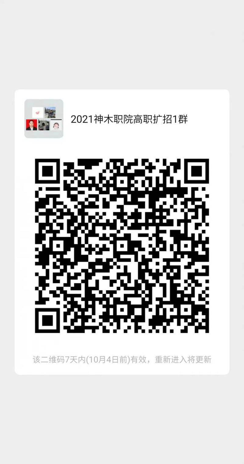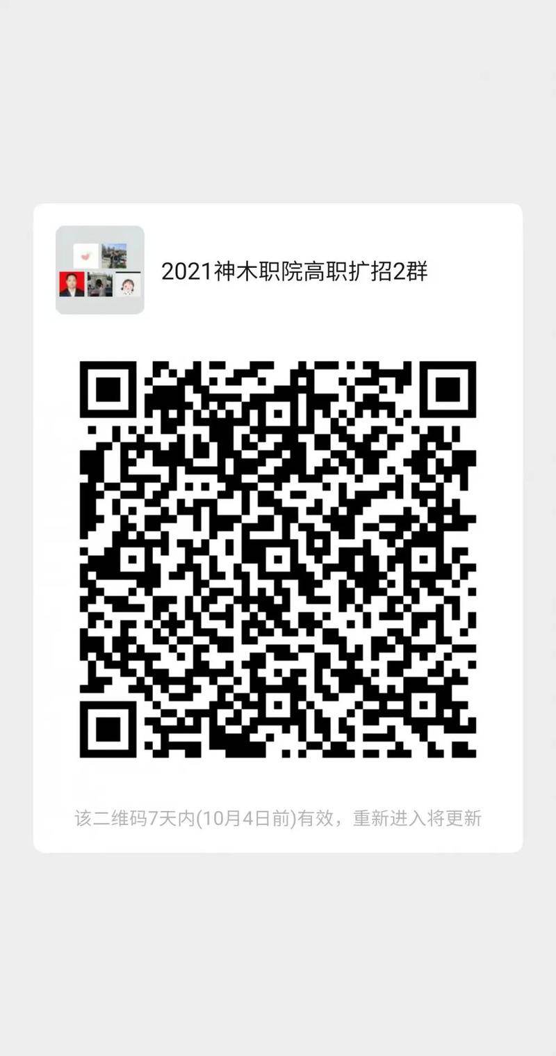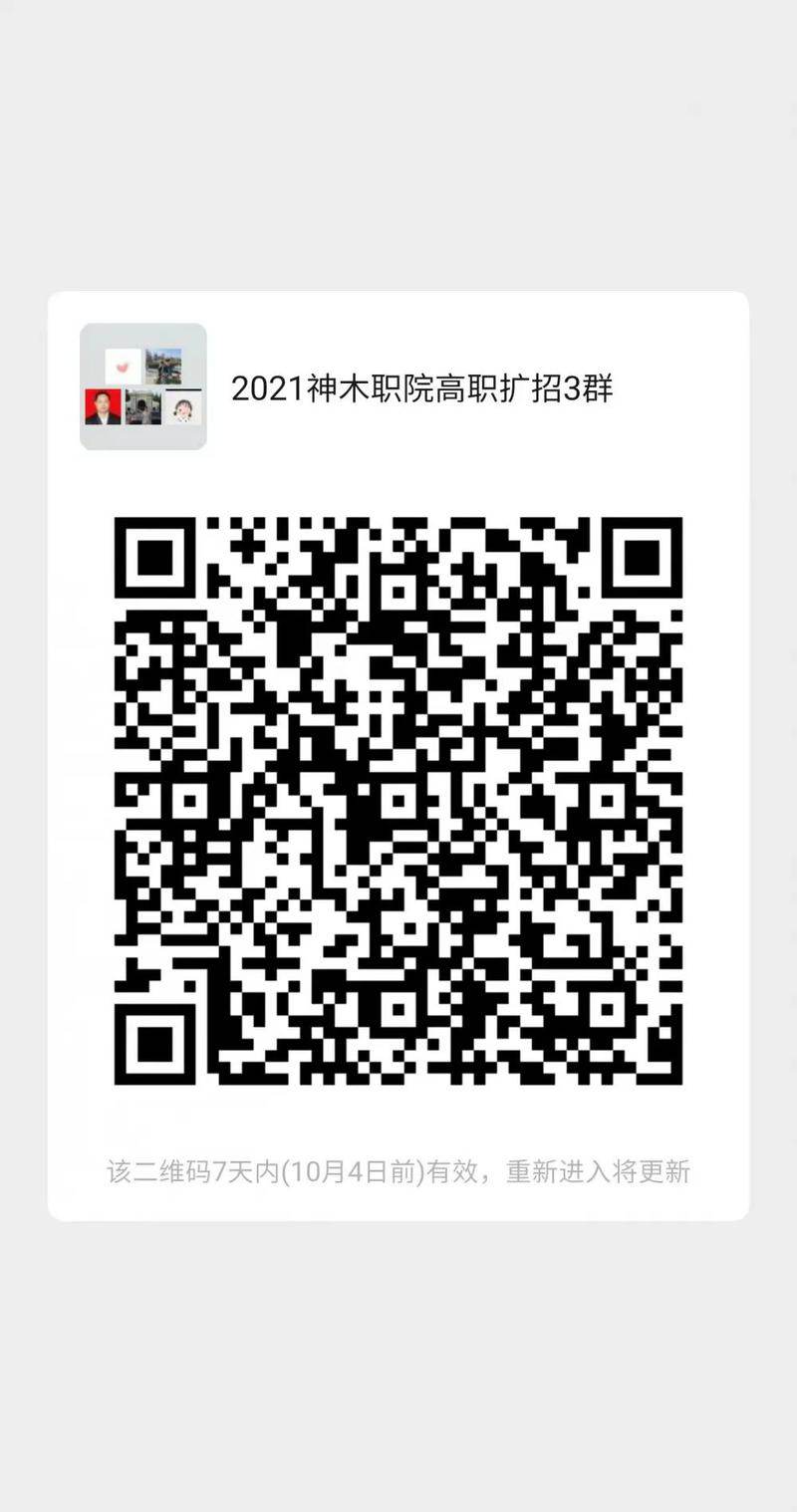 此二维码在10月4日过期,请随时关注“神木职业技术招就处微信公众号”届时招就处会发布新的二维码,方便为大家在线咨询服务!!